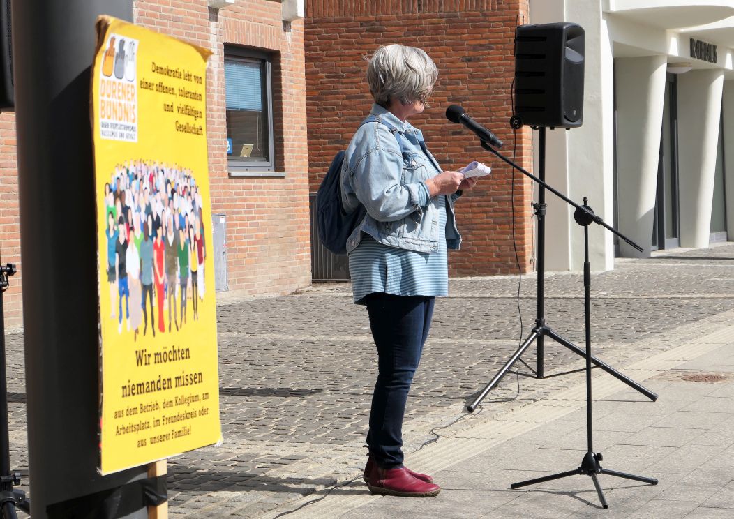 Ich bin Bettina Döring vom Dürener Bündnis gegen Rechtsextremismus, Rassismus und Gewalt.